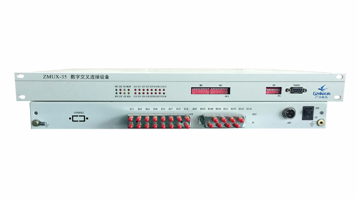 ZMUX-35是一款DXC數(shù)字交叉連接設(shè)備,通過(guò)接入1~16路E1信號(hào),完成16路E1之間任意64K時(shí)隙的無(wú)阻塞交叉連接功能,具有對(duì)隨路信令(CAS)處理能力,可以通過(guò)線路提取同步時(shí)鐘、或設(shè)備內(nèi)部產(chǎn)生同步時(shí)鐘。
