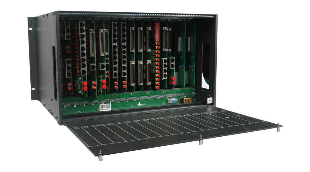 | 大容量: | 采用19英寸6U機(jī)箱,可提供1~128路電話接入(可擴(kuò)展到420路電話)。 |